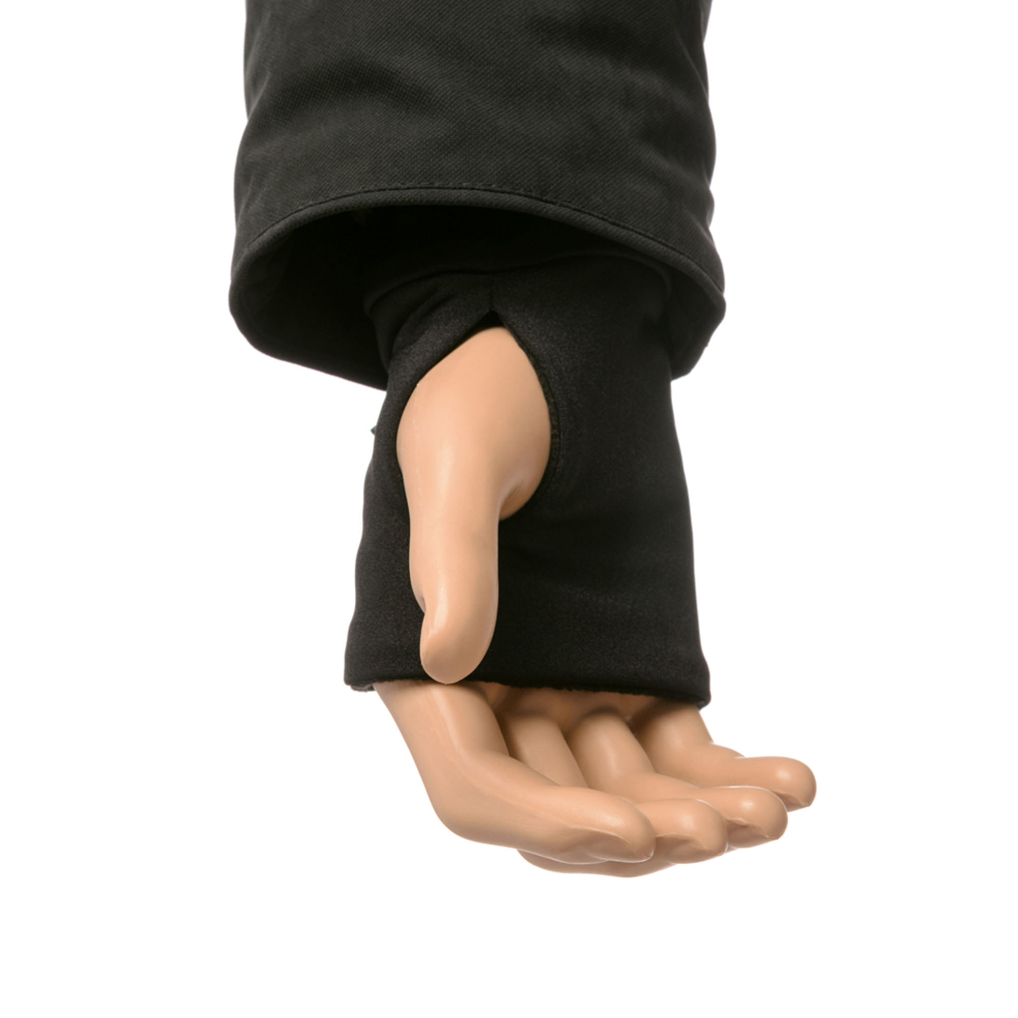 - Удлиненные манжеты-полуперчатки выполнены из мягкого и теплого материала Polartec внутри и эластичного трикотажа снаружи