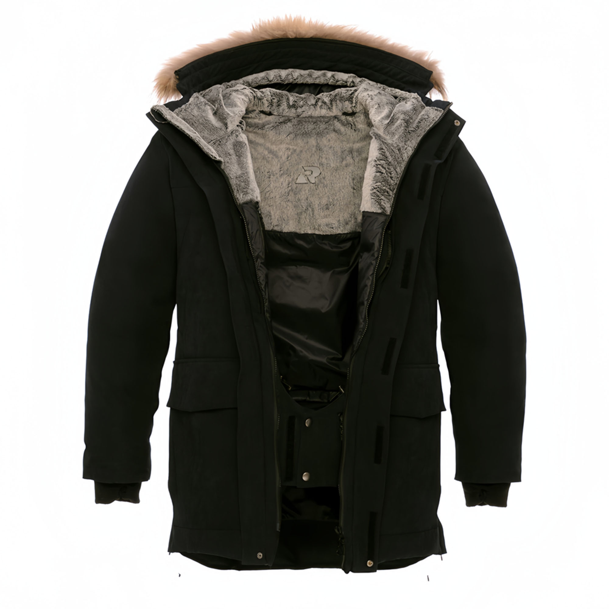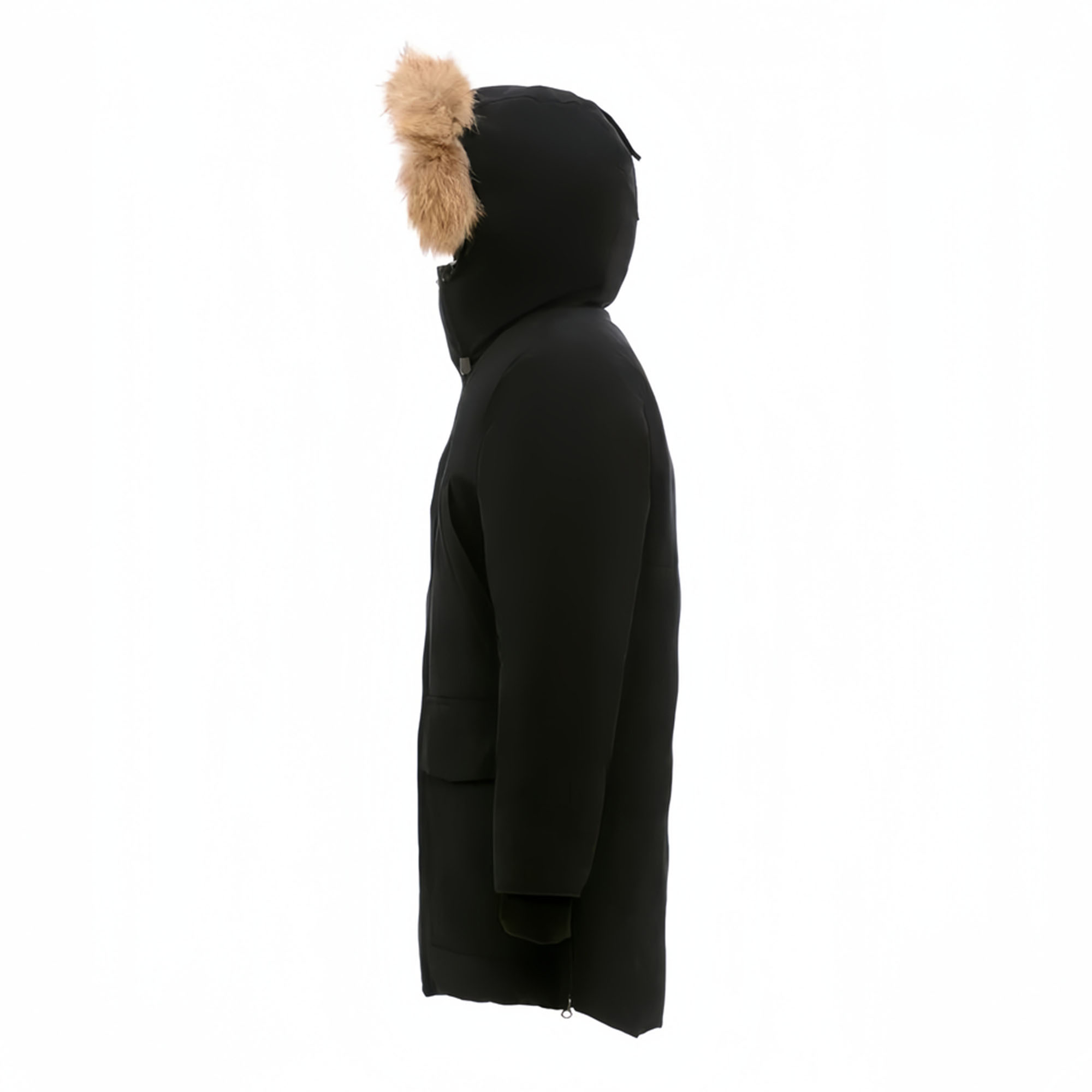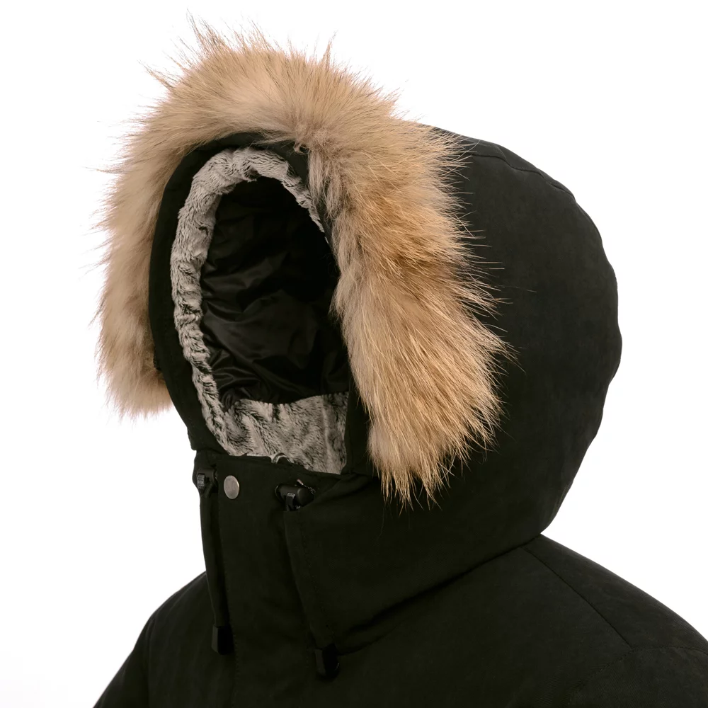 - Отстегивающаяся опушка из натурального меха енота