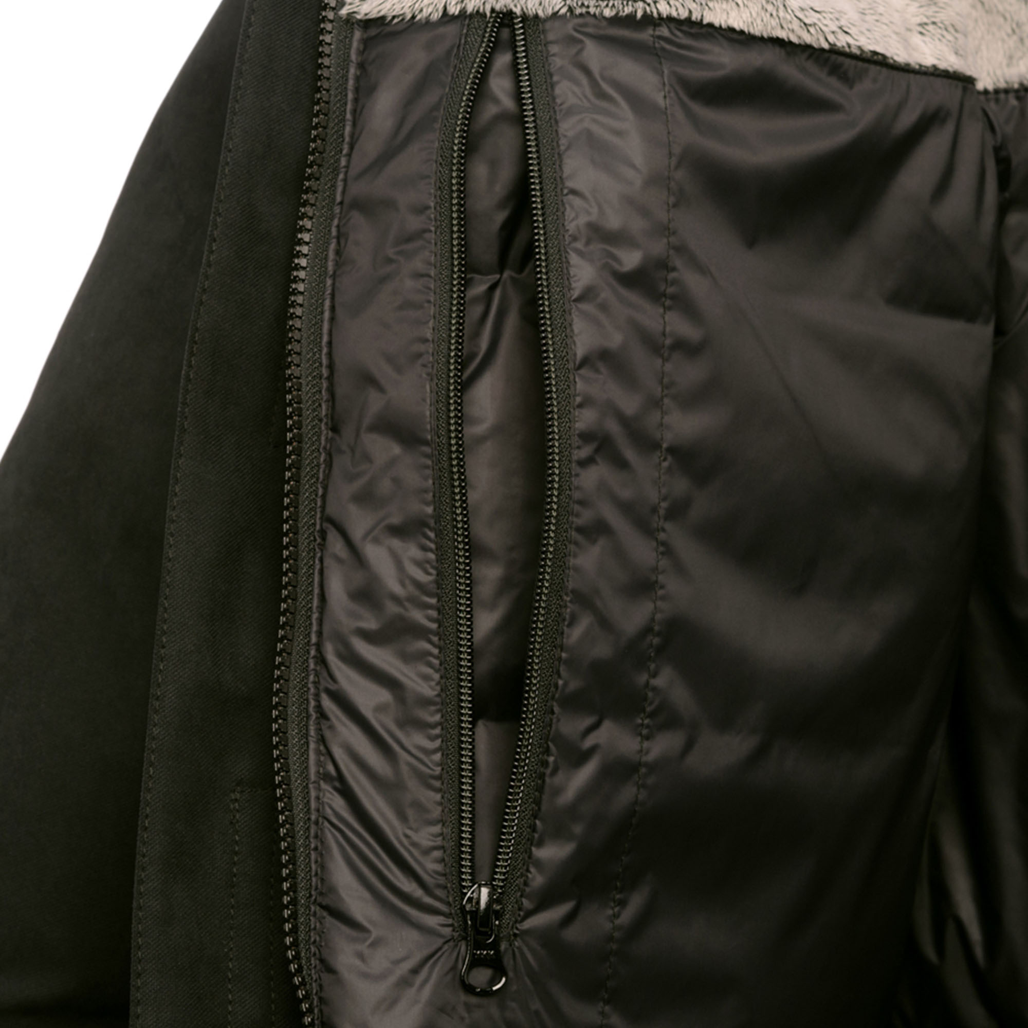 - По боковым швам внизу куртки вшиты молнии