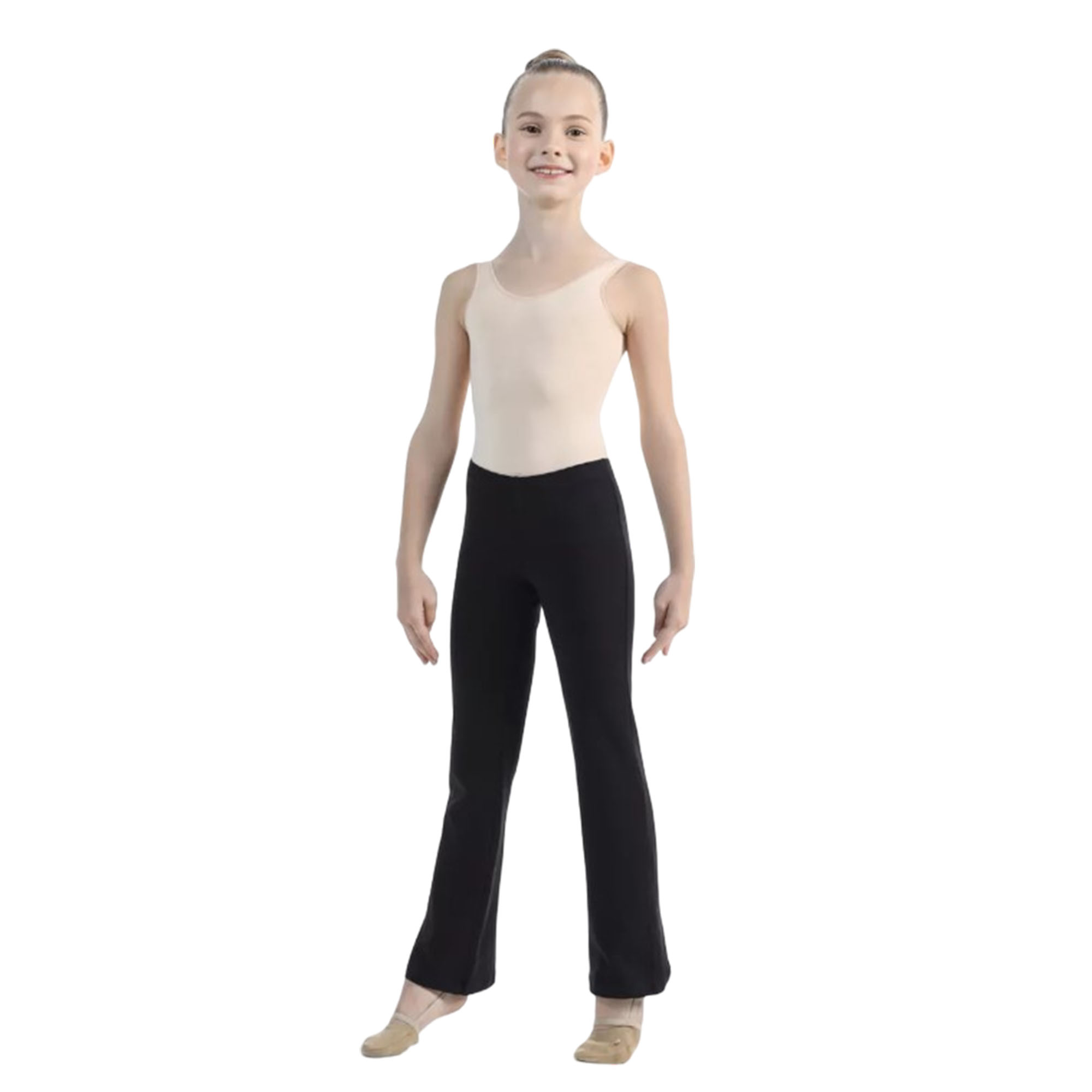 Брюки чёрного цвета прилегающего силуэта с посадкой на талии, слегка расширенные книзу. Используются для спорта и танцев.Особенности и характеристики: